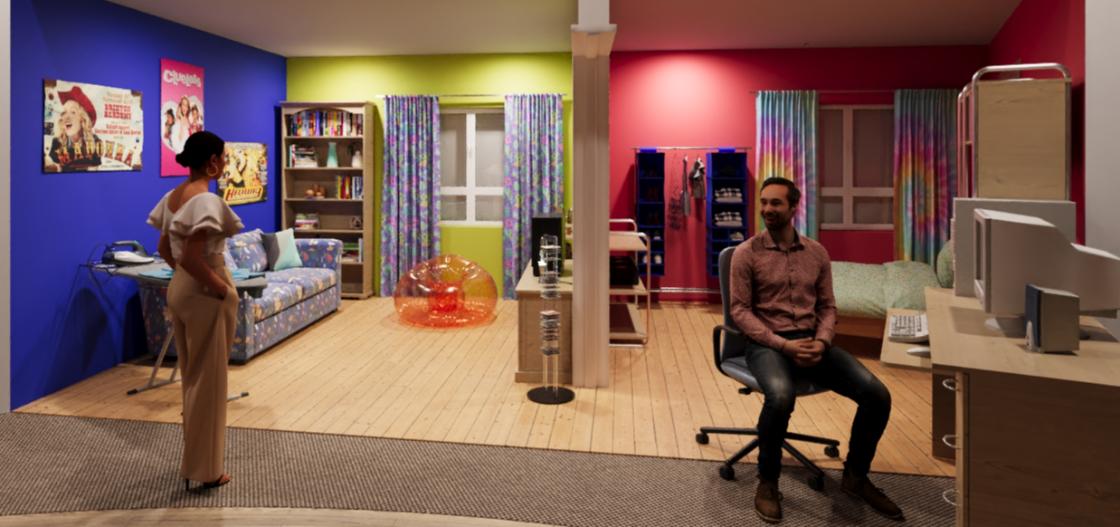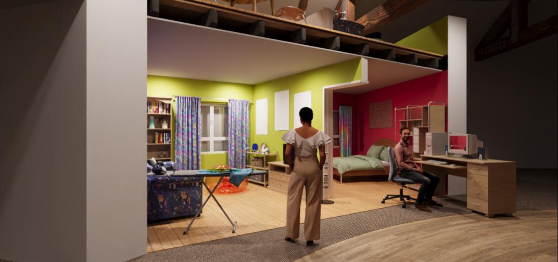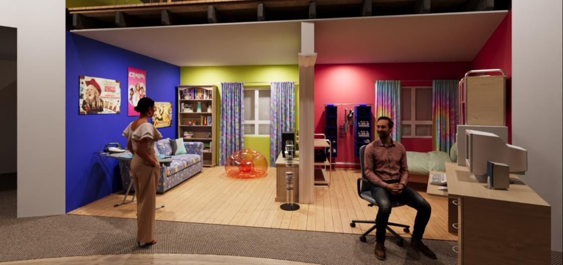 Built from the research around your stories and objects, we’re telling the story of Alex, Sara and Ashley who live in an ex-council flat in Hackney. Alex has recently left their rural hometown to move to London, they met Sara and Ashley through East London’s vibrant Queer Scene. We will show a snapshot of their daily lives as they turn this flat into a home, and play a key role in the area’s LGBTQ+ community.