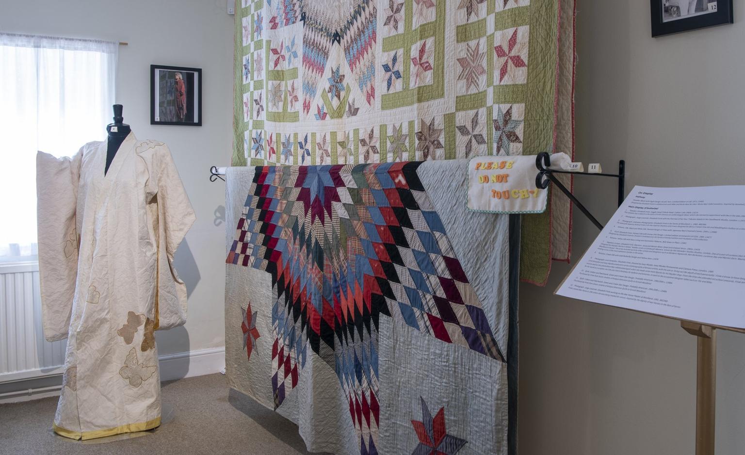 The exhibition includes textiles which Elisabeth Frink designed, including The Snowy Owl scarf, as well as American quilts and Japanese Kimonos which she collected