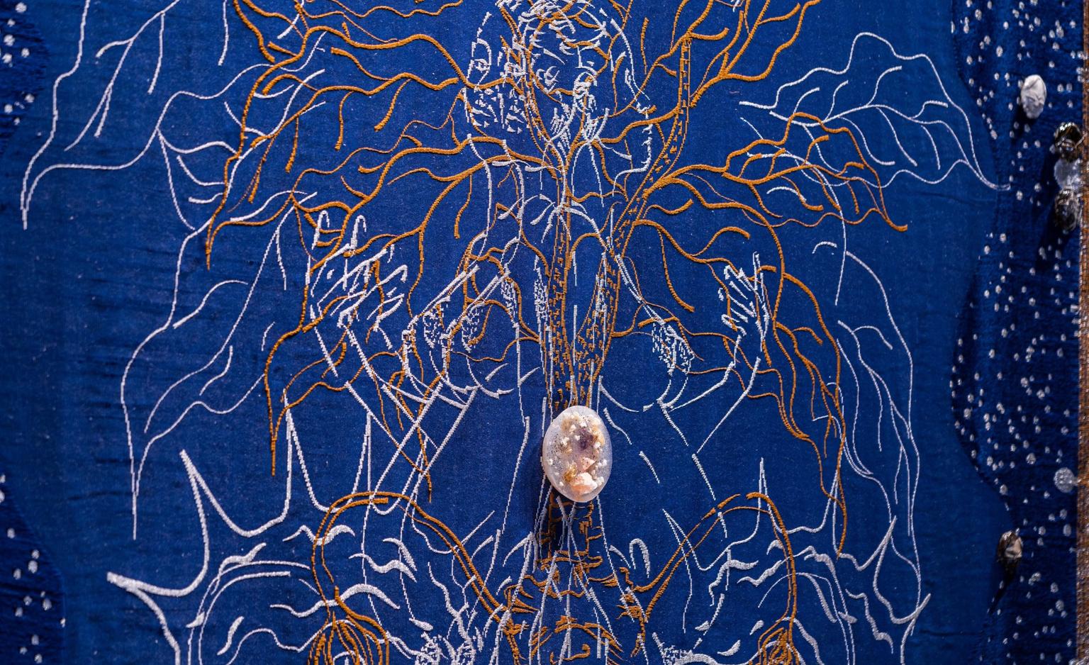 Through textile, drawing, sculpture, video-performance and installation, Marie-Claire’s work explores how ideas of femininity and the cosmos intersect across cultures, generations and materials.