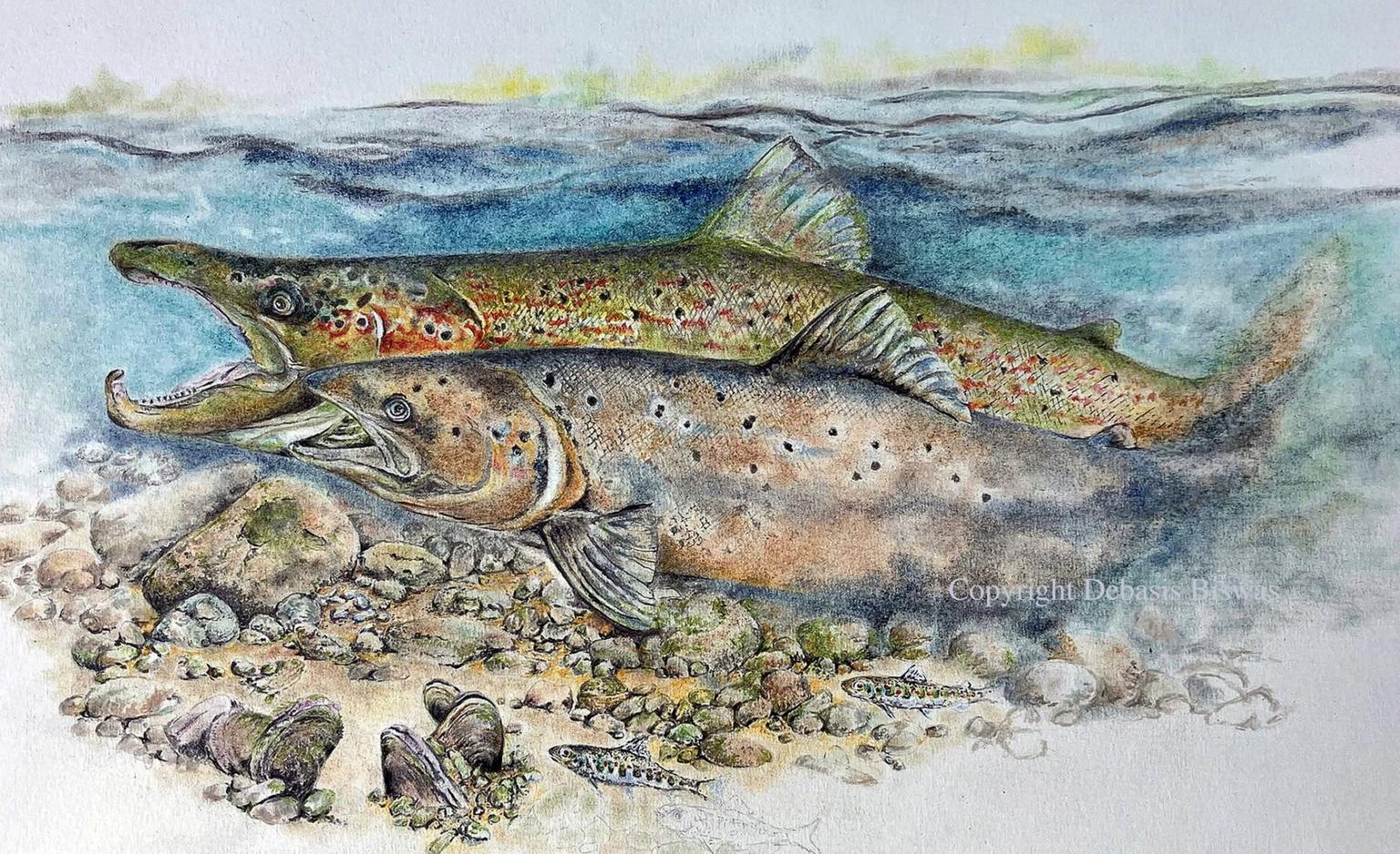 Join us as we explore the heritage and conservation of salmon fisheries along the north coast of Scotland and beyond with local wildlife artist and documentary filmmaker Debasis Biswas. DB’s fascinating co-curated exhibition incorporates paintings, sculptural pieces and a documentary film.
