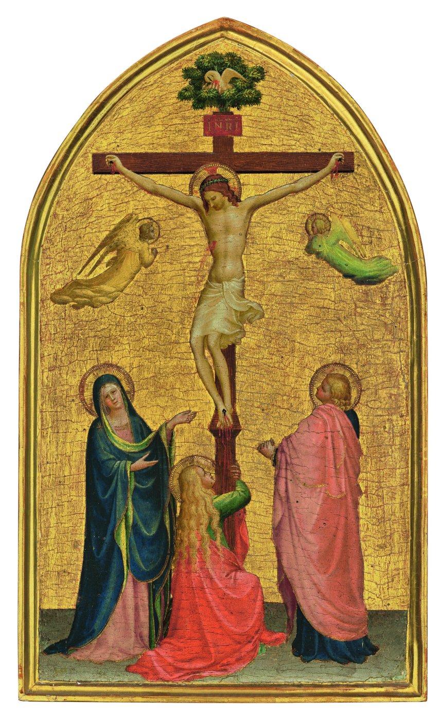 Titled The Crucifixion with the Virgin, Saint John the Evangelist and the Magdalen, the picture has been dated to the early 1420s, when Fra Angelico was at the beginning of his career as both a painter and Dominican friar in Florence. There is no record of who commissioned the painting, which is a small devotional panel of egg tempera on wood.