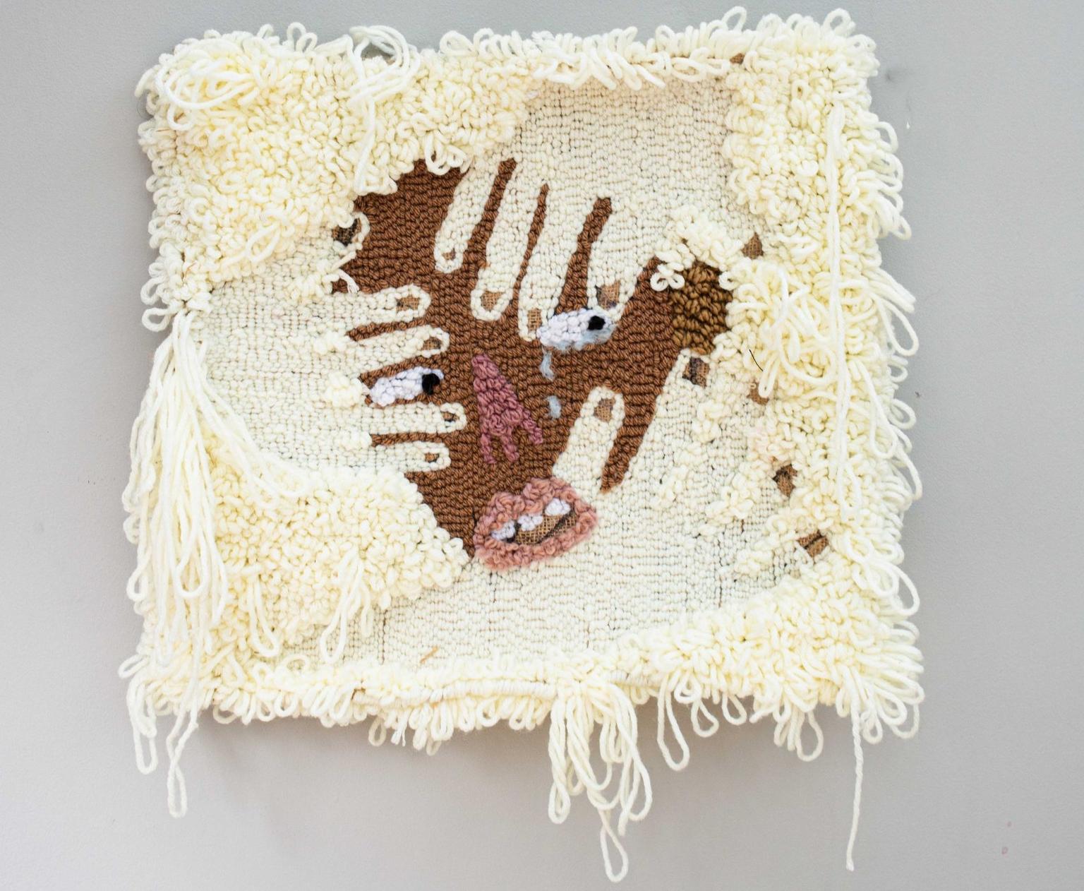 Punch-needle embroidery was my starting point in terms of technique. Each work was made completely by hand, and this is significant because of the special connection between the brain and the hand; it’s non-linear and organic. The tools that I use have limits and offer a certain amount of control with every stitch, and so a work might end up quite different to what I envisioned. The process is repetitive, meditative, almost hypnotic.