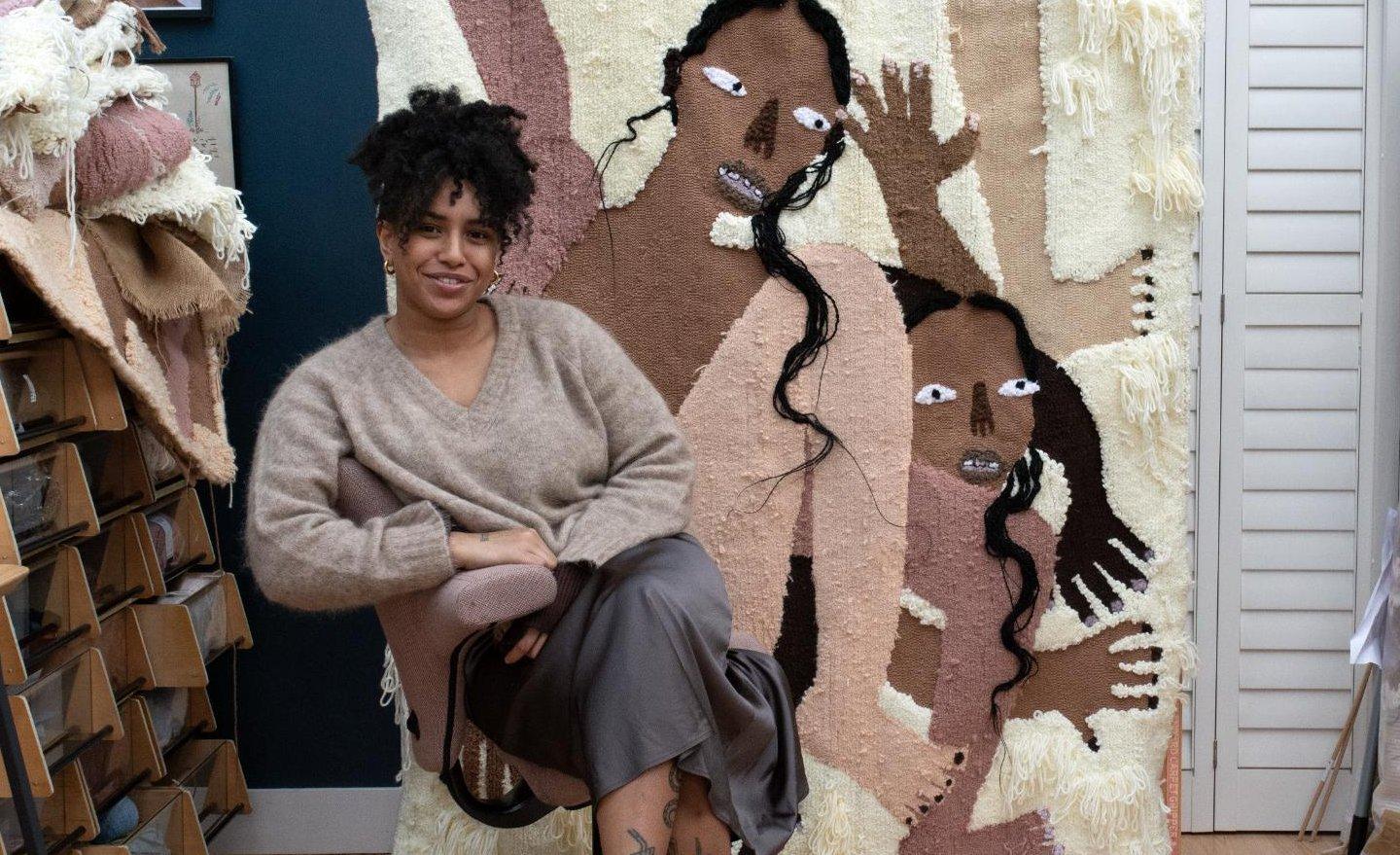 Welsh-Ghanaian artist Anya Paintsil examines the pressures Black artists face, while challenging the Eurocentricism of art and art history. Taking inspiration from growing up in North Wales, Fante craft traditions and West African art, Paintsil combines techniques from textile making with afro hair styling to create textural portraits. Further to this, these works highlight the double standard where white artists are historically celebrated for drawing on and romanticising African art, whereas Black artists are often harmfully misinterpreted.