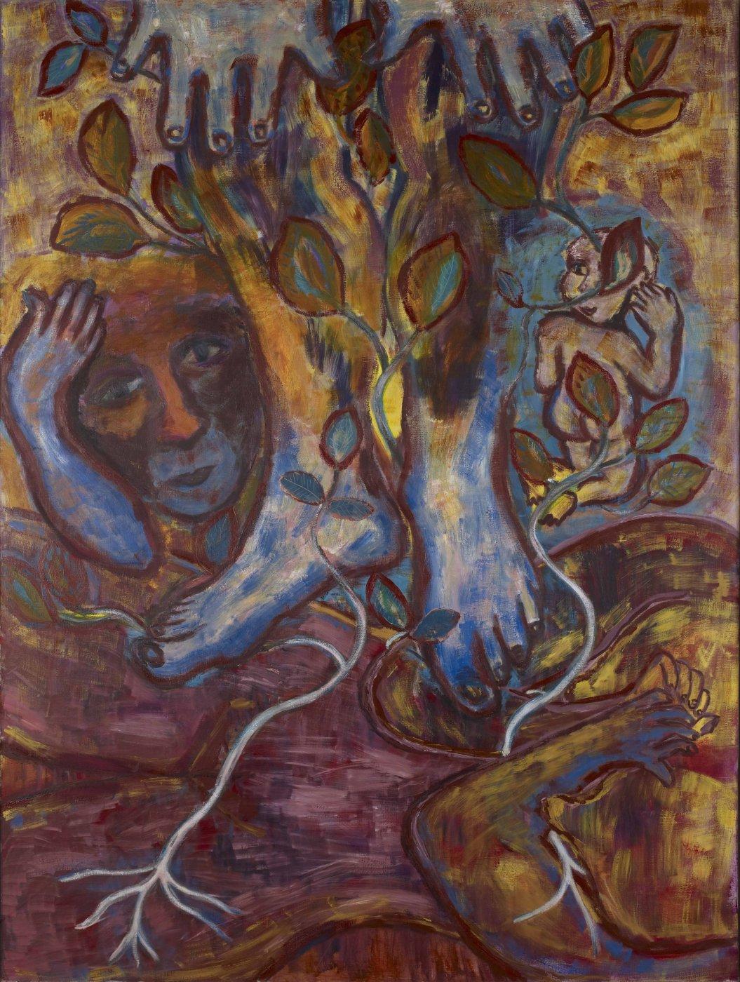 The most shocking thing was the response of a critic who’d always been supportive. When I showed the new paintings it was as though the work had suddenly gone from being radically feminist to being linked to the idea of ‘2.5 children’ and conservative Thatcherite values, which horrified me. However, my work that focused on giving birth and the transformation of having children was welcomed by collectors. My career took off – the Arts Council and British Council both acquired my work. I’m thrilled that the painting Putting Down Roots (1985) in ‘Acts of Creation’ is from this period.