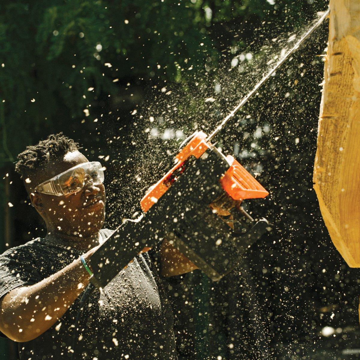 EMDW: You begin larger wood sculptures by carving them with a chainsaw. How does it feel to use such a powerful tool?