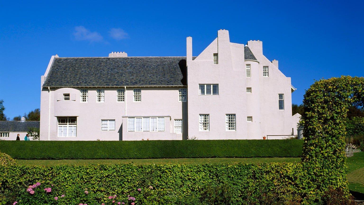 This charmingly asymmetrical house was created by esteemed Scottish architect Charles Rennie Mackintosh. Designed with painstaking attention to detail inside and out, with an exterior form that follows the interior design, Hill House is one of the greatest examples of 20th-century Scottish domestic architecture. The building is currently covered by a chainmail box to protect it, and help the house dry out from, water damage.