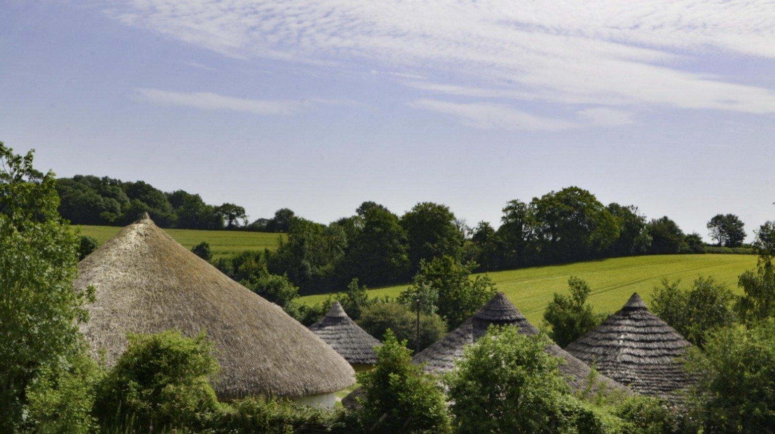 The Iron Age enclosure, which includes six reconstructed roundhouses, has been based on several historic UK sites, notably the Glastonbury Lake Village, and each roundhouse presents a different construction technique from that time period.