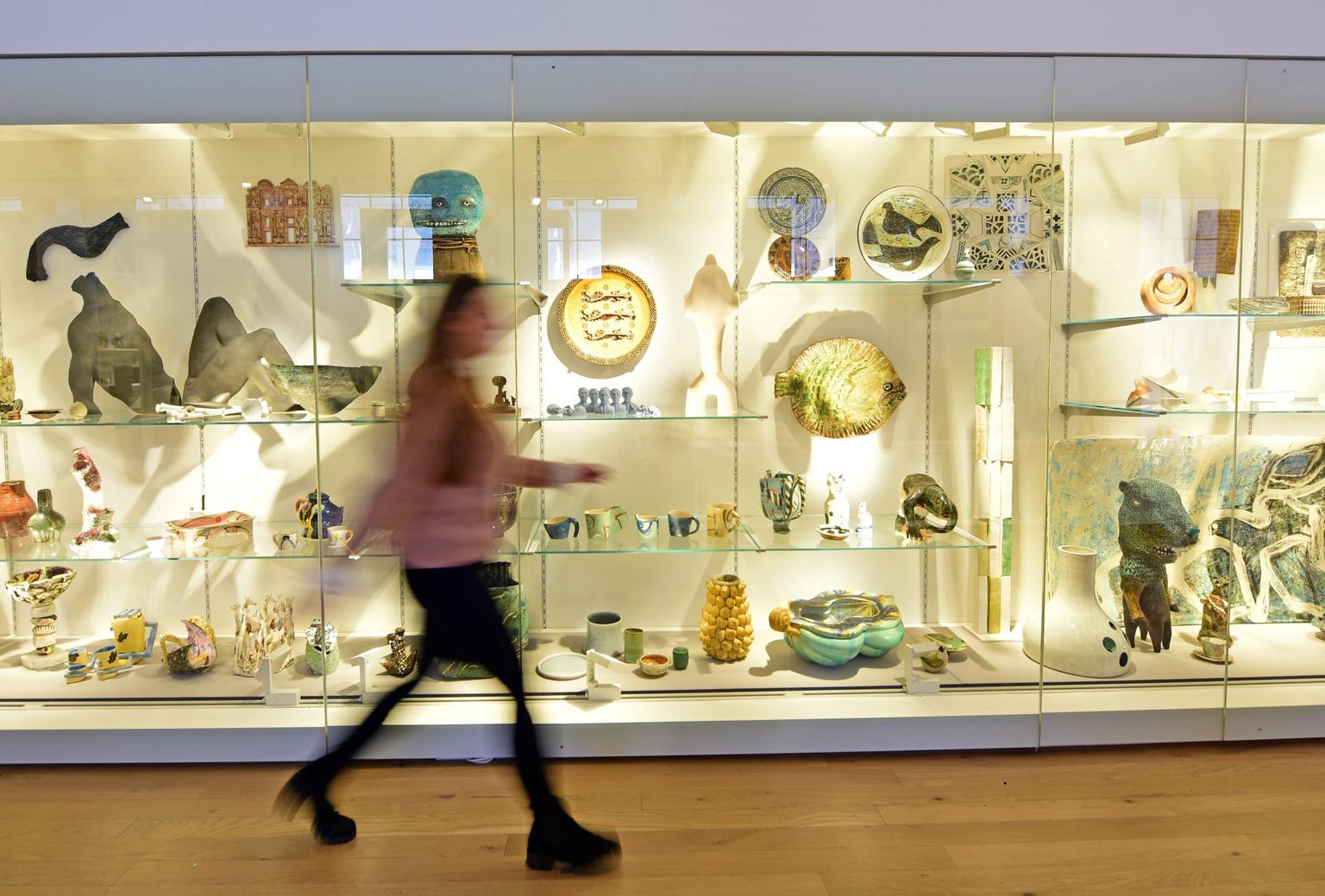 Our permanent galleries of fine art and ceramics include a recent development of an exhibition of ‘Treasures from the Store’ which encompasses some of the highlights of the collection, as well as works that have rarely or never been on display before. In 2023 the gallery unveiled a ceramics ‘Wall of Women’ display that celebrates the innovation and creativity of women working with clay from the early 20th century to the present day.