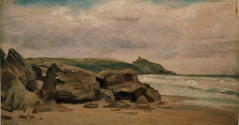 1) A coast scene near Looe by Lionel Bicknell Constable previously attributed to John Constable (main illustration); 2) Scene on a Rocky Coasty by Millet. These two works form part of an important public gift in the memory of Lady Sadler by Sir Michael Sadler, a member of the Executive Committee of the Art Fund in 1931. It takes the form of a collection of pictures and drawings, together with some objects of Oriental art