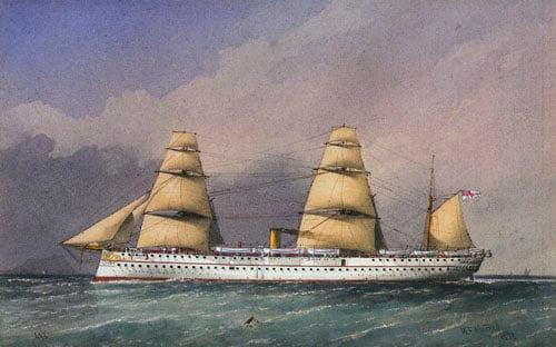 1) HMS Endymion; 2) HMS Jumna; 3) Yachts Fleet Wing and Vanessa; 4) HMS Endymion rounding Cape Horn, 1) and 2) 1873; 3) and 4) 19th century