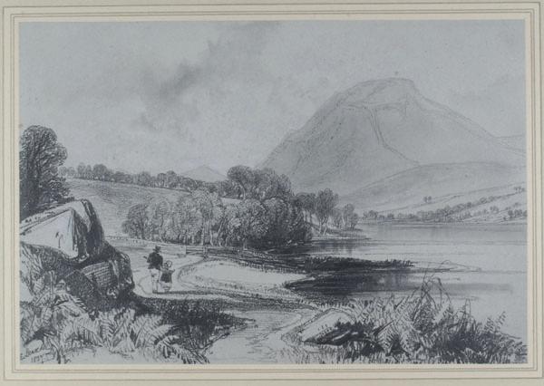 The three drawings represent the final stage of Lear's Lake District work which he worked on after he had left the Lakes and shortly before his departure for the Continent. Lear creates precise details and varied textures largely from the use of the pencil and touches of white heightening. In the small view from Furness, for example, he is able to create the impression of distant hills with no more than a few waving lines.
