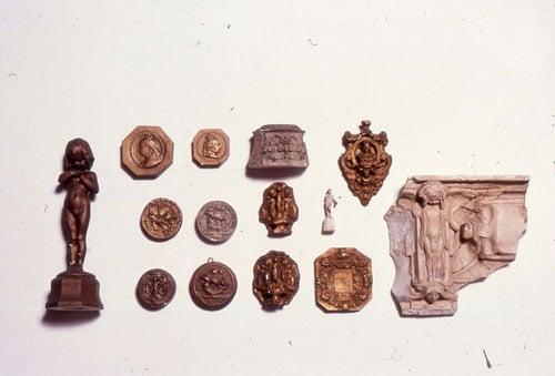 14 small specimens of sculpture, in plaster. Part of a collection of working models and sketches left in the artist's studio in Kensington Palace at his death.