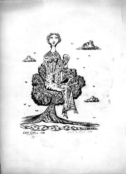 1) The Artist's Wife seated in a Tree, 1944, 2) Self-portrait, 1944, 3) Head in a Tree (Tree and Hills), 1944, 4) Spanish Lady, 1962, 5) Head, 1939, 6) Head, 1977, 7) Kneeling Fool, 1977, 8) Angel, 1977, 9) A Song, 1962, 10) Fool and Bird, 1978, 11) Dance Landscape, 1962, 12) A Midsummer Night's Dream, 1964, 13) Masked Fool, 1958, 14) Angels, 1960, 15) A Song, 1960, 16) Fool with a Bird, 1960, 17) The Offering, 1961, 18) Untitled, 1955.