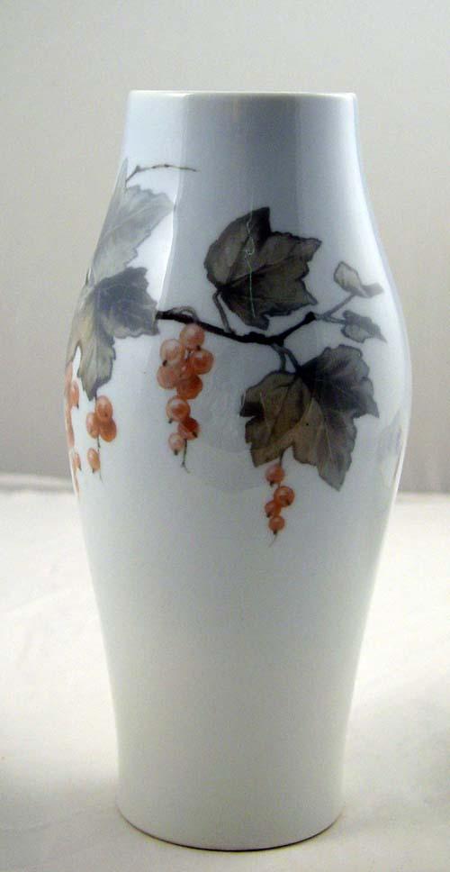 Collection of European porcelain including a Copenhagen vase decorated with red currant leaves and berries (illustrated). 17 pieces are missing from the collection. This collection forms part of the Simpson bequest. Many objects from the collection of the late Mr WW Simpson were presented to the Victoria and Albert Museum and British Museum in 1918 through the Art Fund. The remainder of the bequest was stored by the Victoria and Albert Museum during the First World War and then presented to museums in Derby, Nottingham, Bradford and Salford.