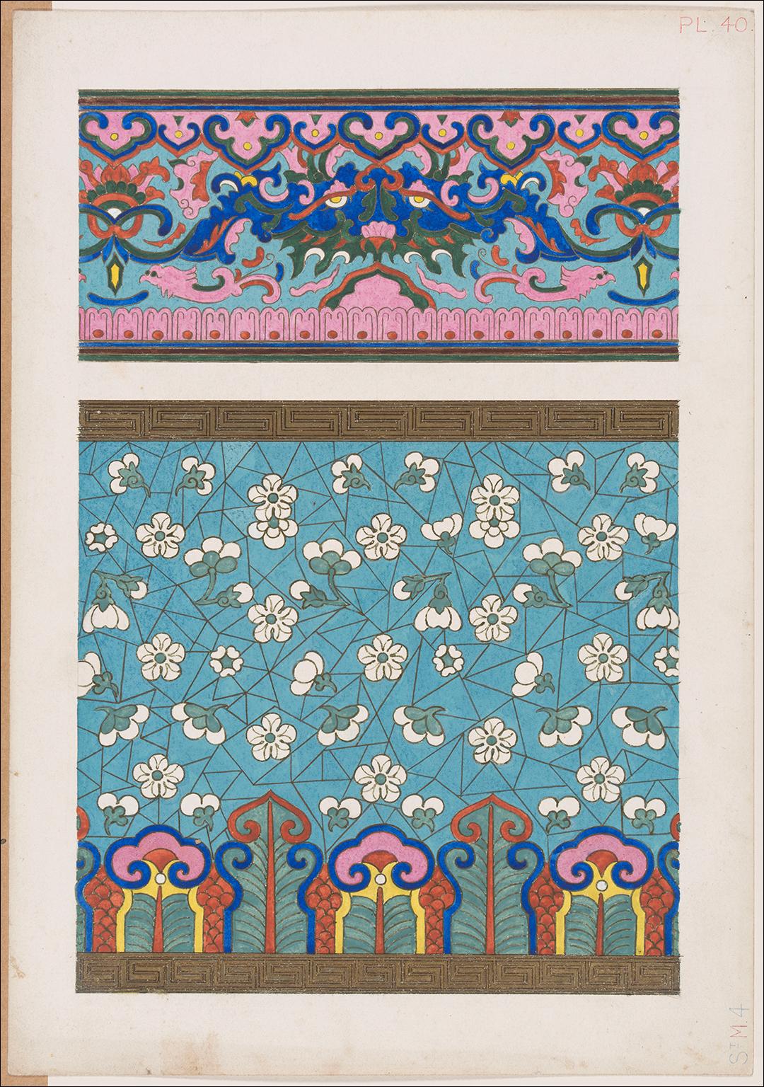 51 original designs for publication in ‘Examples of Chinese Ornament selected from objects in the South Kensington Museum and other collections’ (London: S. & T. Gilbert, 1867)