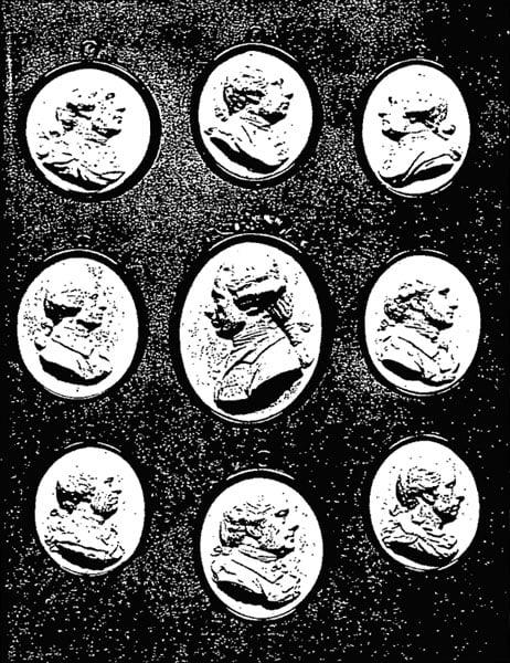 9 medallion portraits in glass paste. These works were donated by Max Rosenheim who presented over 170 works to the British Museum through the Art Fund between 1904 and 1911 including the first work to have entered the nation's collections through the Art Fund, Daniel Quare's Repeating watch. Max Rosenheim was a financier and part of the Executive Committee of the Art Fund from its inauguration. He was a well known collector of engravings and medals and also Trustee of the British Museum.