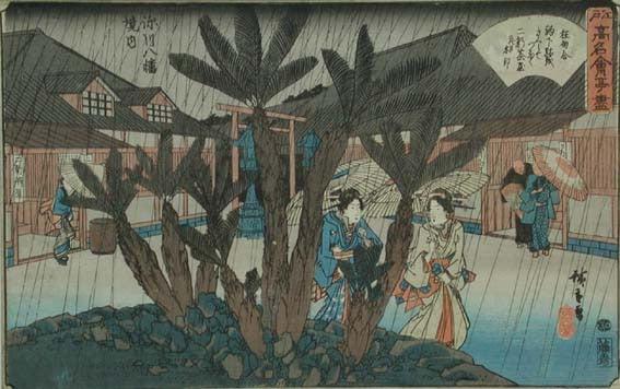 A Courtyard with Two Women by a Clump of Palm Trees in the Rain, 1797–1858