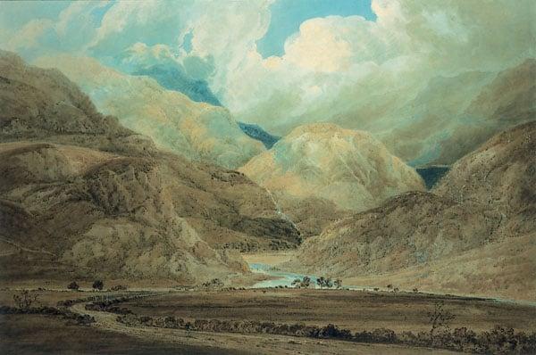 Also known as 'Near Beddgelert'. The artist visited North Wales twice in 1798 and 1800 and worked up his sketches. He uses a restricted palette to emphasise the grandeur of the landscape.