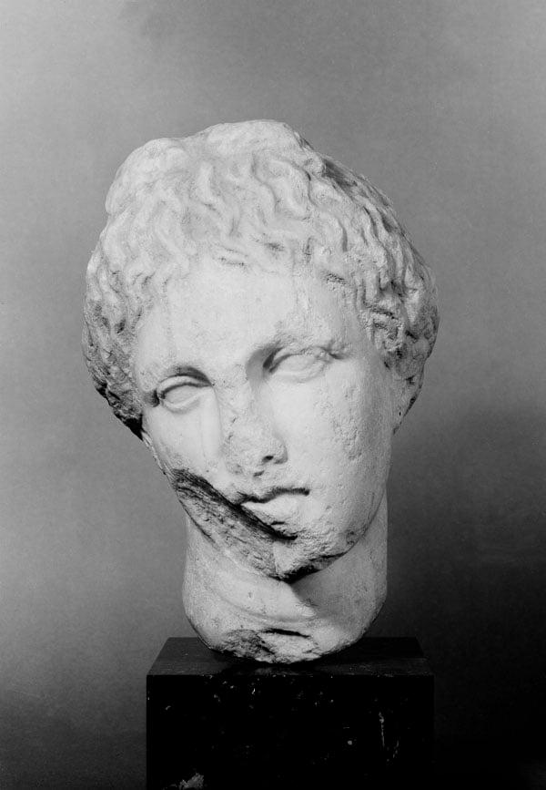 The work of an Athenian craftsman of the 4th century BC. It was once part of a full-length figure of a woman from a naiskos, a funerary group of two or three figures in attitudes of grief or resignation.