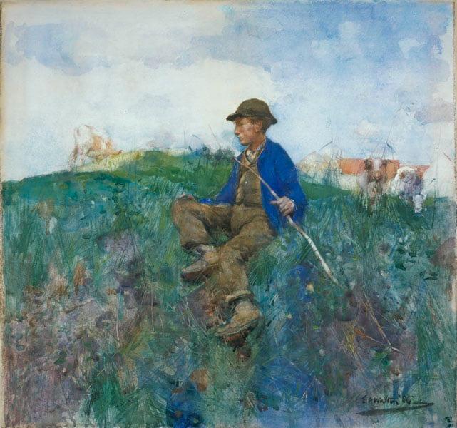 This work is arguably Walton's greatest watercolour and played a key role in establishing his European reputation: in 1890 it was included in the second International Art Exhibition in Munich where the artist won a gold medal. Walton was a member of 'The Glasgow Boys', who popularised working in an almost impressionistic style in their oil paintings and watercolours. He especially drew inspiration from the work of Jules Bastien-Lepage who was renowned for his depictions of peasant figures.