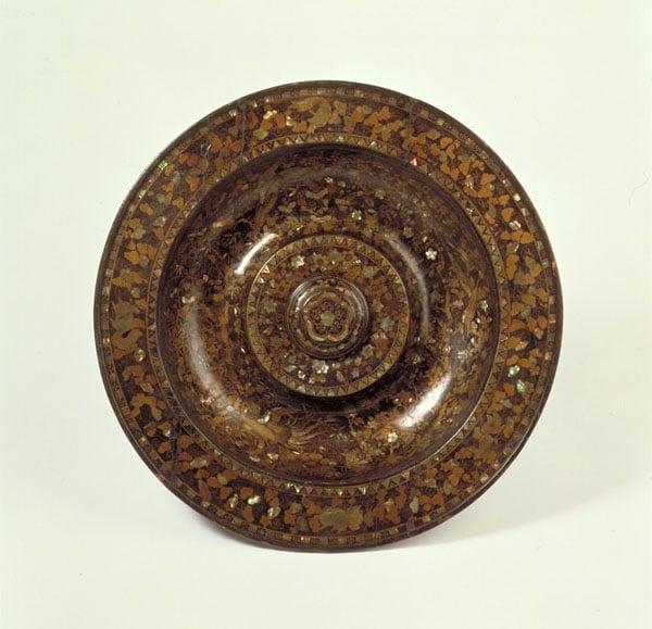 The form is copied from a late 16th or early 17th century silver basin of Dutch or Portugese origin. Must date from before expulsion of the Jesuits from Japan in 1614.