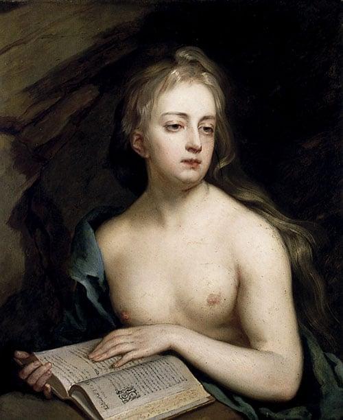 The subject matter depicted in this painting is that of the Magdalen reconciled. The semi-nude figure looks to the left and rests her hand on an open book and she is loosely clad in blue drapery. The vision of Glory is symbolically represented by a ray of light descending from the top right corner of the painting. This painting was part of a collection of 117 works belonging to the industrialist and engineer F.D. Lycett Green and bequeathed to York through the Art Fund, in 1955, in recognition of the remarkable efforts made after the Second World War by its curator to transform it into a gallery of international importance.