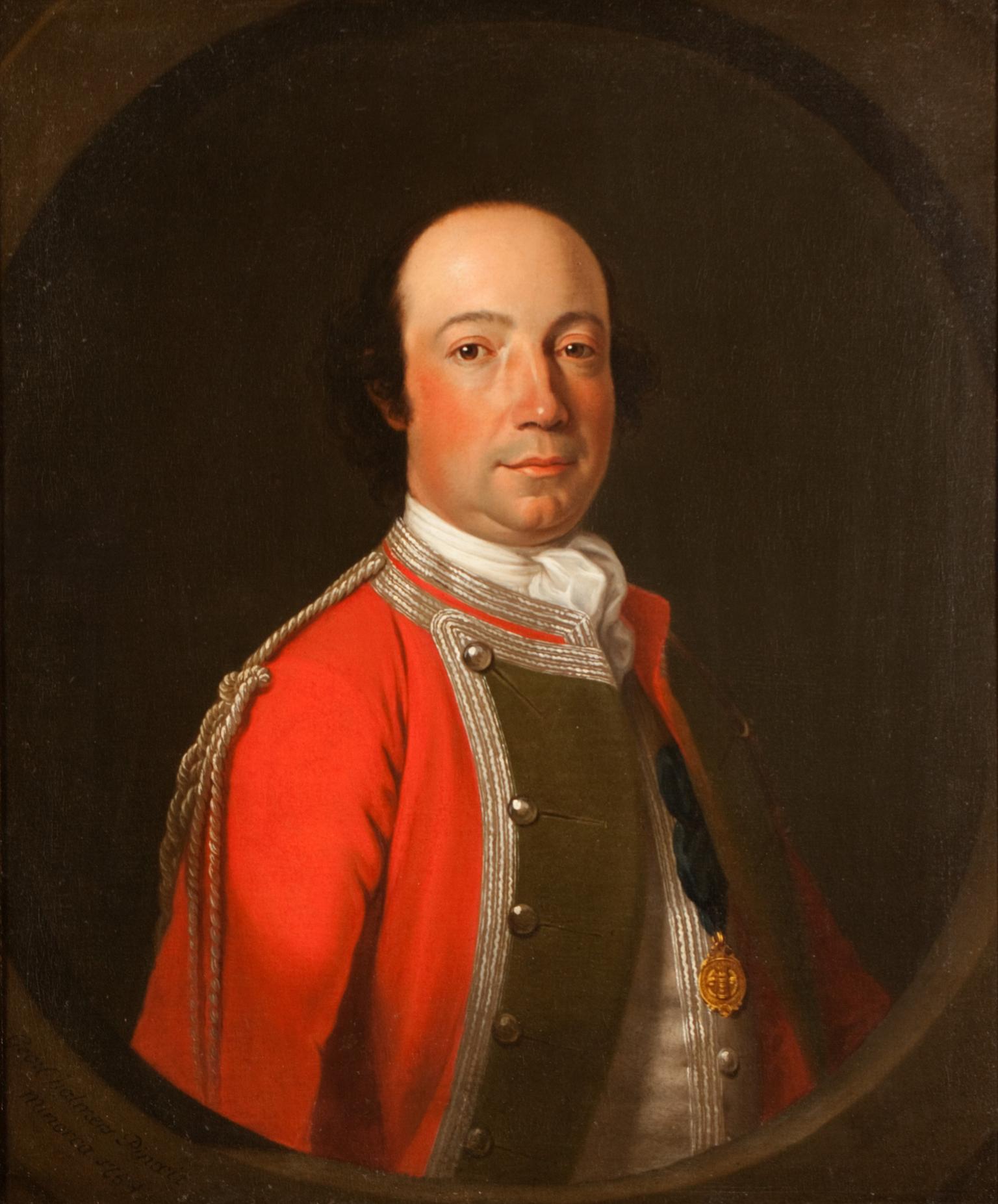 Sir George Chalmers painted this portrait of a military officer of the 24th Regiment of Foot during a visit to Menorca in the 1750s.