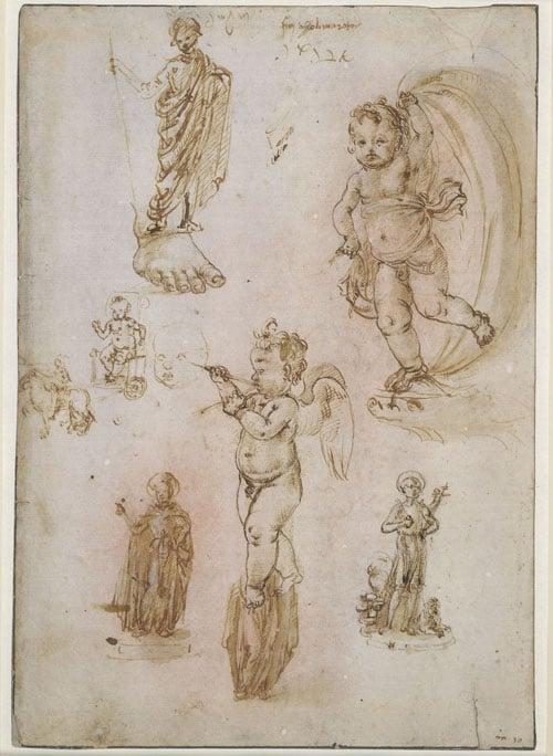 A double-sided sheet of drawings - a leaf from the so-called 'Verrocchio' sketchbook. Other parts of the same sketch book are also in the British Museum. Part of a grant for 9 works.