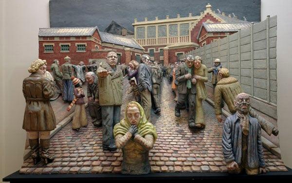 This work was inspired by the real-life tragedy of a mining disaster in Northern France in 1974. Mason wrote about this work, In a scene of tragedy, the unwilling actors recognise each other in their suffering. The bonds of such feeling are translated by their looks.