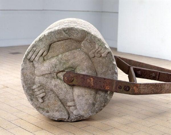 This garden roller was actually intended for use. Gill secularised the biblical story: it was intended as a simple everyday object, part of the work ethos, in which Adam and Eve are literally having a roll in the Garden of Eden.