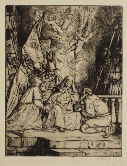 This etching is part of a collection of 10 etchings by contemporary artists presented to Victoria Art Gallery, Bath; Central Library, Dundee; New Walk Museum and Art Gallery, Leicester and Astley Cheetham Public Library and Art Gallery, Stalybridge.