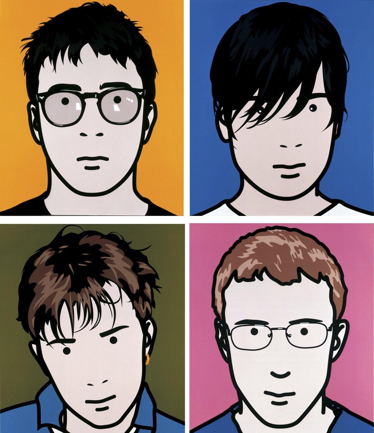 Created using photographs of members of the band, the images are 'digital drawings', conveying essential information with the minimum of detail, reducing the subjects to black outlines and unmodulated colours. The prints were produced in four sets, each one differing in size, and therefore unique.