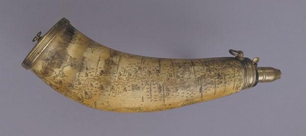 Engraved with map showing cities of New York and Albany with their fortifications and the lines of forts on the Hudson and Mohawk rivers, all carefully named. Also has Royal Arms of England with the Hanoverian quartering (ie: c.War of Independence), and the cypher of James II who, as Duke of York, gave his name to the city. One of 26 gifts to 19 museums by Sir Alec Martin or Sir Alec and Lady Martin through the Art Fund between 1935 and 1967.