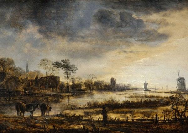 Aert van der Neer was one of the most prominent specialists in Dutch nocturnal landscapes, painting night scenes of idyllic landscapes of luminous beauty throughout the whole of his career. His technique was at its richest when he painted on panel, and his simple ideas of composition achieve their effect on a small scale.