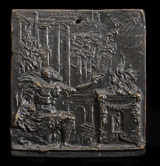 Leone Leoni was condemned to the papal galleys in 1540 after a fight with the papal jeweller and only released after the intervention of Andrea Doria, a powerful prince in Genoa. Leoni produced a series of three plaquettes and five medals to commemorate his debt to Doria as liberator and patron including this plaquette.