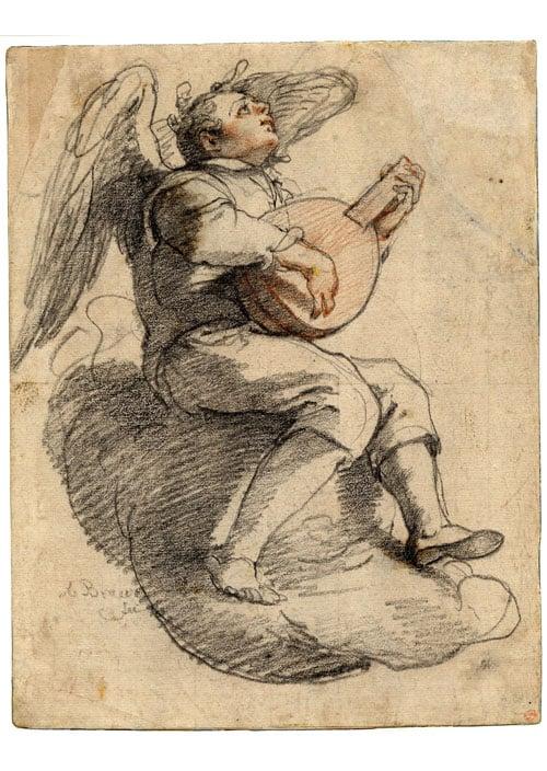 Angel seated on a cloud playing a lute, 1570-1639