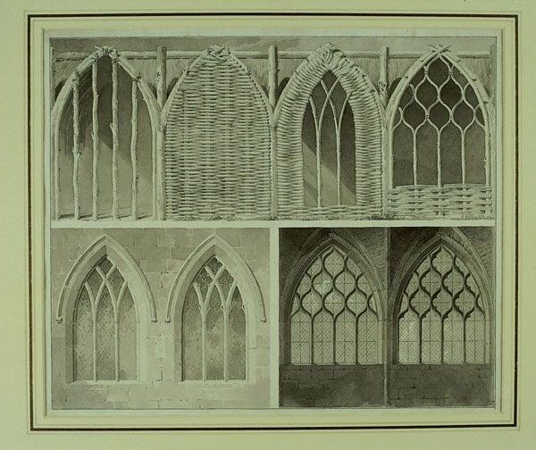 13 Drawings from a series illustrating a book entitled 'Essay on the Origin, History and Principals of Gothic Architecture' by James Hall, 1813.