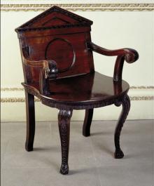 Chiswick House was built in 1727-9 for Richard Boyle, 3rd Earl of Burlington (1694-1753), to his specification that it should integrate the architecture, landscape, furniture and decoration of the Palladian era in England. Chiswick House is trying to refurnish the building as it was at the time of Lord Burlington's death. This chair, one from a set of twelve recorded in the 1770 inventory of the Gallery at Chiswick, has been attributed to the revered architect-artist William Kent. He had first-hand knowledge of modern Italian art and design and displayed this in his work at Chiswick. The chair is of a unique design not repeated for any other house designed under Kent's influence.