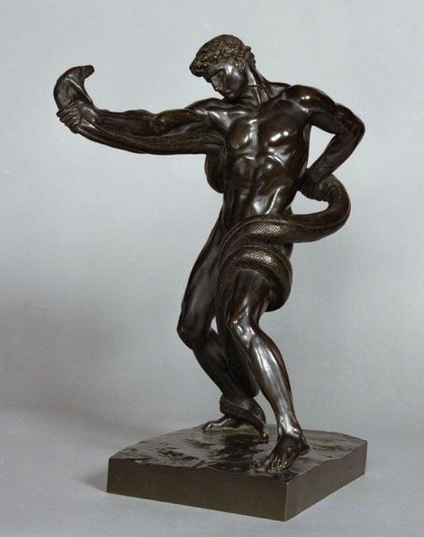 The depiction of the struggle between a muscular male nude and a python derives from the story of Apollo and the Python of Delphi. Although the subject matter displays Leighton's knowledge of and respect for renaissance masters in particular Michelangelo, its execution shows the artist's preference for contemporary French sculpture. Leighton used sculpture to further explore the relationship of the figure in space that was such an important part of his representational paintings.