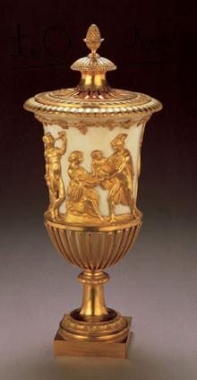 Bacchanalian vase, 2 Cleopatra candle vases, 2 Lion's mask candelabra, 1770–1778