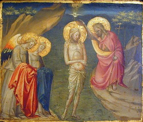 Christ stands in the middle of this scene and two angels carrying cloaks approach from the left. Saint John is depicted on the right in a kneeling position. This painting was part of a collection of 117 works belonging to the industrialist and engineer F.D. Lycett Green and bequeathed to York through the Art Fund, in 1955, in recognition of the remarkable efforts made after the Second World War by its curator to transform it into a gallery of international importance.
