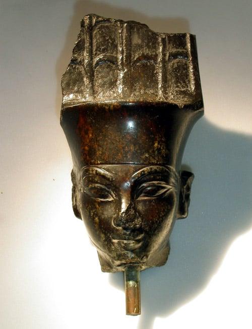 Head of a figure of Amen Re, god of Thebes. One of two bequests to two museums by Stuart H J Johnson through the Art Fund in 1958.