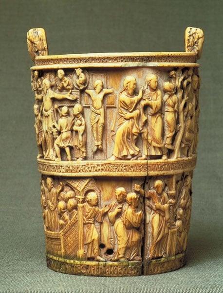 This piece was deemed so desirable to the nation's collections, that the Victoria and Albert Museum appealed to the Art Fund for half of its purchase price - an appeal that was successful. Formerly in the collection of Tsar Alexander III, this situla - or holy water bucket - was sold from the Hermitage as a result of financial hardship in the Soviet Union. It is one of only four such objects to survive. The situla was made around 920 to mark the visit of Otto II to Milan and contains twelve scenes from the Passion on two superimposed rows.
