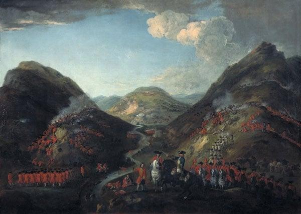 This is a contemporary and highly accurate depiction of the battle of Glenshiel. This painting was originally catalogued as the Battle of Killiecrankie of 1689.