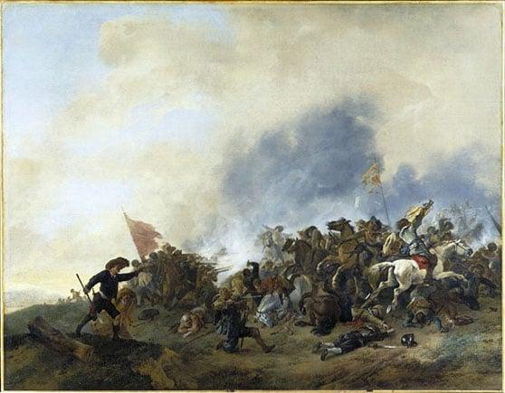 This painting of a battle scene captures the engagement of the infantry and firing muskets to the left of the painting, and the cavalry on the right-hand side of the painting. This painting was part of a collection of 117 works belonging to the industrialist and engineer F.D. Lycett Green and bequeathed to York through the Art Fund, in 1955, in recognition of the remarkable efforts made after the Second World War by its curator to transform it into a gallery of international importance.