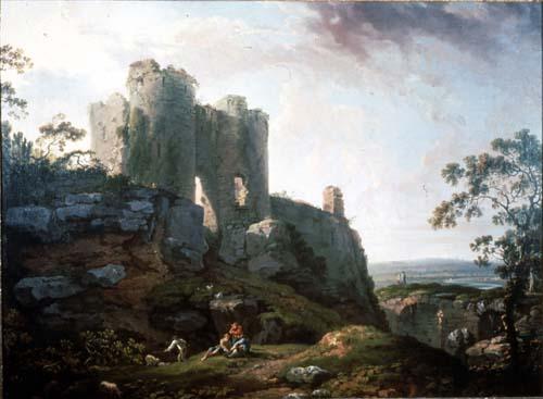The Ruins of Beeston Castle. The artist came to England from Ireland in 1762, and was patronised by the aristocracy, notably the Dukes of Portland and Buccleuch. This picture was painted for Sir Peter Leicester of Tabley Hall, Northwich.