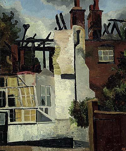In 1937 Joan Warburton enrolled as one of the first students of Cedric Morris and Arthur Lett-Haines at their now legendary East Anglian School of Painting at Dedham. In 1939 the school was burned down by fellow student Lucian Freud, so the story goes, and while the students were painting the blackened ruins, Alfred Munnings, who also lived at Dedham, drove past crying 'Down with modern art'. The school was relocated to Benton End.