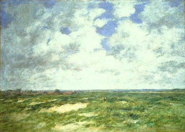 A late sand dune picture, very free and powerful. At the time of acquisition, the Ashmolean only had early sea-side and ferry-boat Boudins. This is the most important work in a collection of 9 works bequeathed to the Ashmolean by the Hocks.