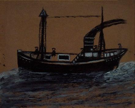 This picture joined works in the museum by other artists associated with St Ives, who admired Wallis' directness and unselfconscious naive style. A fisherman and scrap merchant, Wallis started to paint at the age of 67 'for company' after the death of his wife. He painted in ship's or house paint on irregular scraps of wood and cardboard given him by a nearby grocer, and had an instinctive feeling for abstract design. His seascapes, set in shallow space and painted without knowledge of traditional perspective, create a sensation of all-round vision.