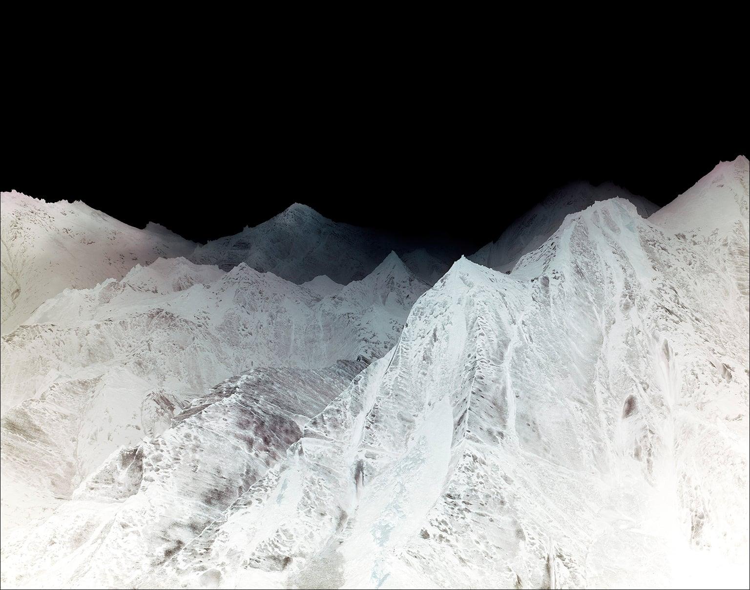 Dan HoldsworthÂ’s large-scale photograph of an Icelandic glacier offers an awe-inspiring view of the world. After capturing his pictures, Holdsworth edits them through analogue and digital processes to turn them into something startling. The blue of the sky becomes the black of space, while the ice and rocks appear in blindingly negative white, giving us a new perspective on nature at its most sublime.